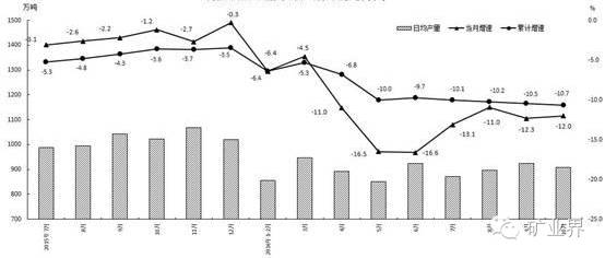 1-10月份,全国规模以上工业原煤产量27.4亿吨,同比减少3.3亿吨,下降10.7%;10月份,原煤产量2.8亿吨,同比减少3841万吨,下降12.0%,比上月收窄0.3个百分点。