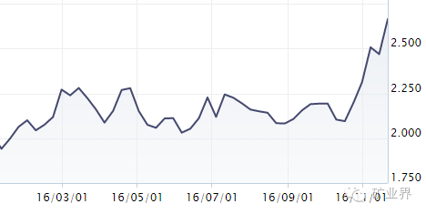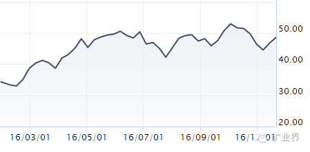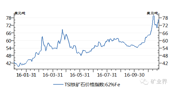 图3 2016年铁矿石价格变化趋势