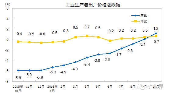 工业品价格回升明显。9月份,工业生产者出厂价格同比上涨0.1%,结束了同比连续54个月下降的态势,显示国内工业领域供需矛盾日趋缓解。